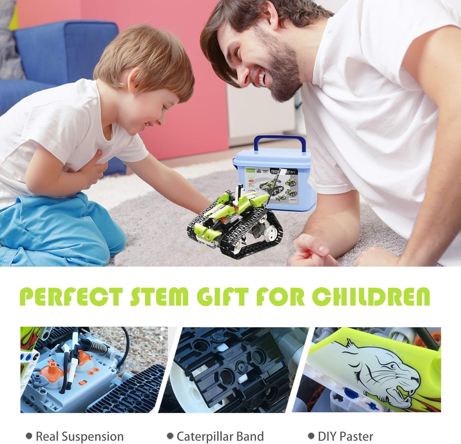 This epic 400-piece STEM kit builds 5 different remote-controlled creations. Kids learn engineering, problem-solving, and get to drive their builds!